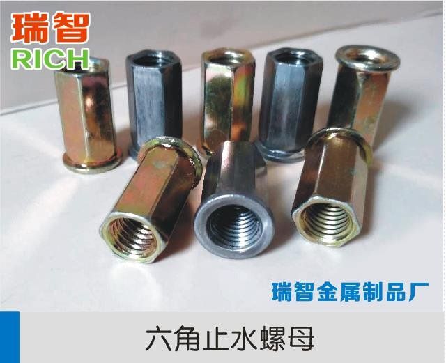 河北精利金属制品有限公司瑞智金属制品厂(www.richjinshu.cn) 本厂拥有专业的产品研发团队,引进高性能多工位台湾冷镦机,专业生产制造:六角止水螺母、六角接头螺母、横孔锤母及衬套、套管、罗拉、活塞销、渔网坠、双头束、空心铆钉、空心螺丝、紧定螺丝. T唱、电子五金件及家具螺母等五金配件。